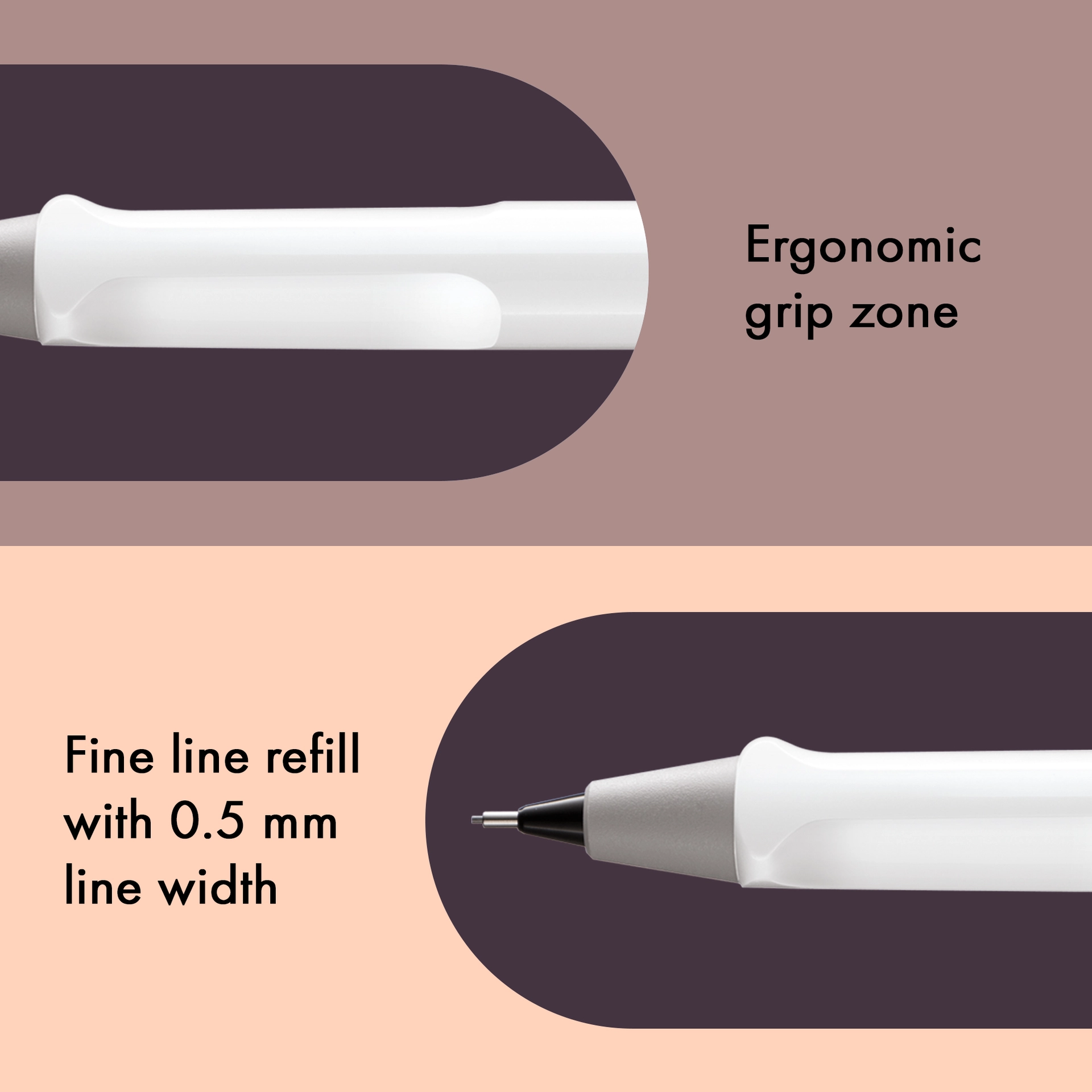Der LAMY safari ist mehr als die Summe seiner Details: Er ist ästhetisch, robust und individuell. Der markante, selbstfedernde Clip hält das Schreibgerät sicher an Ort und Stelle befestigt. Das Gehäuse aus schlagzähem Kunststoff macht ihn zum robusten Begleiter in jedem Umfeld und die abgeflachte Form verhindert versehentliches Wegrollen. Funktionale Details wie subtil ergonomisch geformte Griffflächen und ein Sichtfenster zur Kontrolle des Tintenstands fügen sich wie selbstverständlich in das Design ein und machen den LAMY safari zum modernen Klassiker.