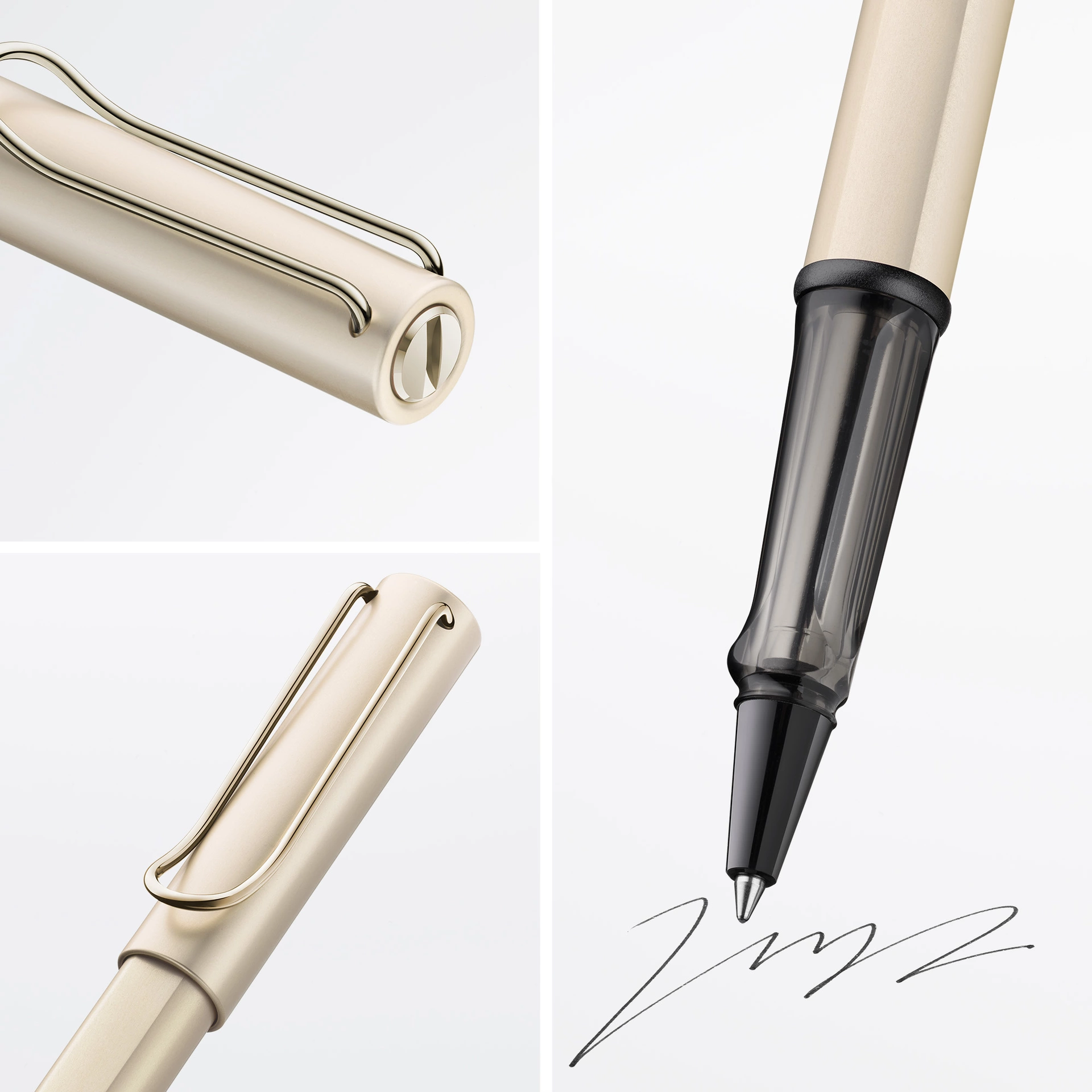 Tintenroller aus Aluminium, ergonomisches Griffstück aus transparentem Kunststoff, mit selbstfederndem Metallclip