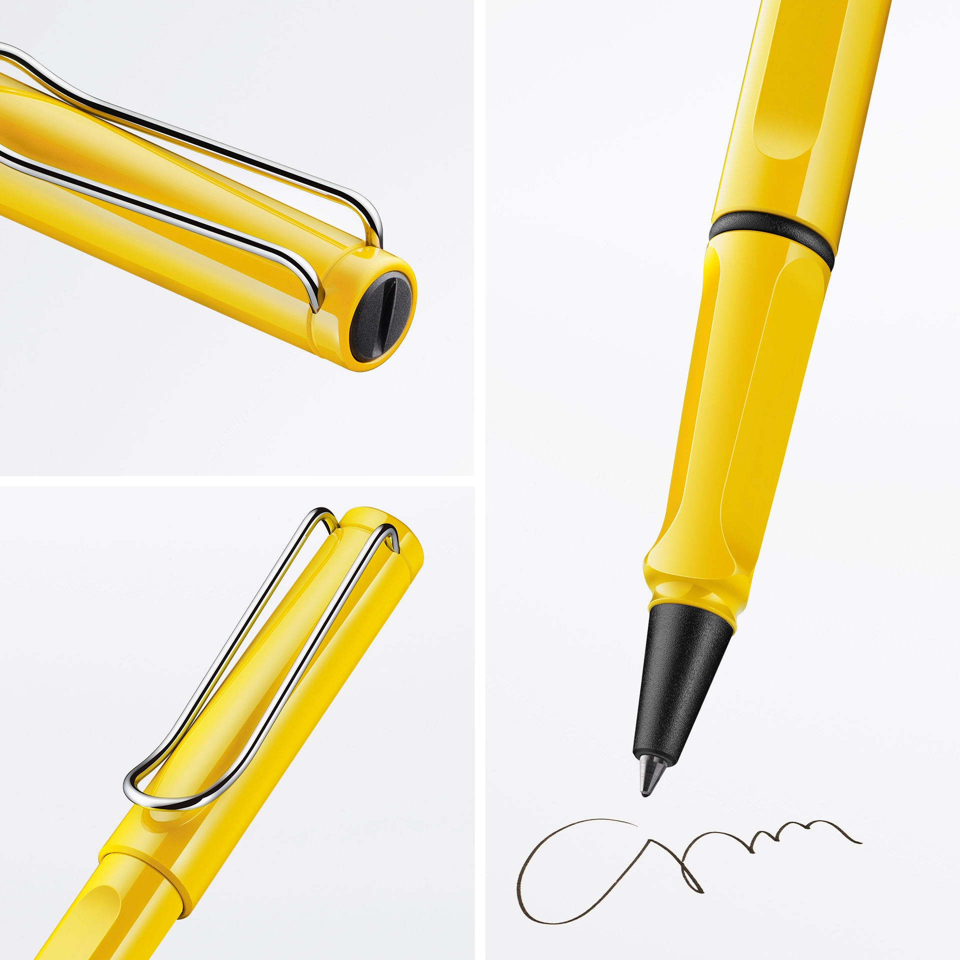 Der LAMY safari ist mehr als die Summe seiner Details: Er ist ästhetisch, robust und individuell. Der markante, selbstfedernde Clip hält das Schreibgerät sicher an Ort und Stelle befestigt. Das Gehäuse aus schlagzähem Kunststoff macht ihn zum robusten Begleiter in jedem Umfeld und die abgeflachte Form verhindert versehentliches Wegrollen. Funktionale Details wie subtil ergonomisch geformte Griffflächen und ein Sichtfenster zur Kontrolle des Tintenstands fügen sich wie selbstverständlich in das Design ein und machen den LAMY safari zum modernen Klassiker.