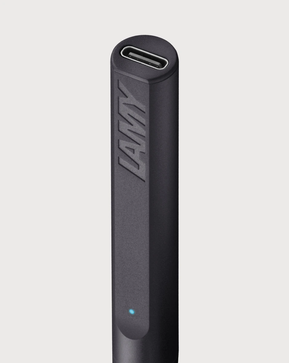 Lieferumfang: LAMY safari note+ all black, 2 Ersatzspitzen, USB-A zu USB-C Ladekabel
