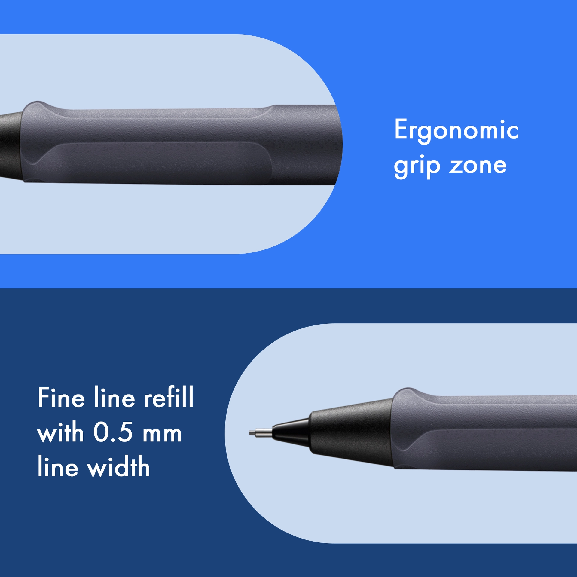 Der LAMY safari ist mehr als die Summe seiner Details: Er ist ästhetisch, robust und individuell. Der markante, selbstfedernde Clip hält das Schreibgerät sicher an Ort und Stelle befestigt. Das Gehäuse aus schlagzähem Kunststoff macht ihn zum robusten Begleiter in jedem Umfeld und die abgeflachte Form verhindert versehentliches Wegrollen. Funktionale Details wie subtil ergonomisch geformte Griffflächen und ein Sichtfenster zur Kontrolle des Tintenstands fügen sich wie selbstverständlich in das Design ein und machen den LAMY safari zum modernen Klassiker.