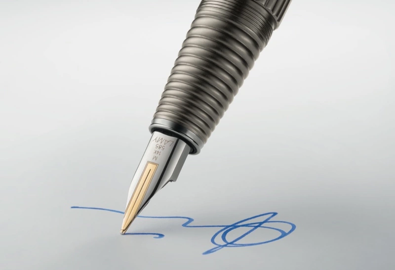 Für das Schreibgefühl der Feder sind primär Form und Federstärke ausschlaggebend: Die LAMY Standardfedern sind aus Stahl und in einer Vielzahl an verschiedenen Stärken, Formen und Schliffen erhältlich. Eine Ausnahme stellen allerdings Goldfedern dar – hier sorgt das Material für Schreibkomfort der Extraklasse.