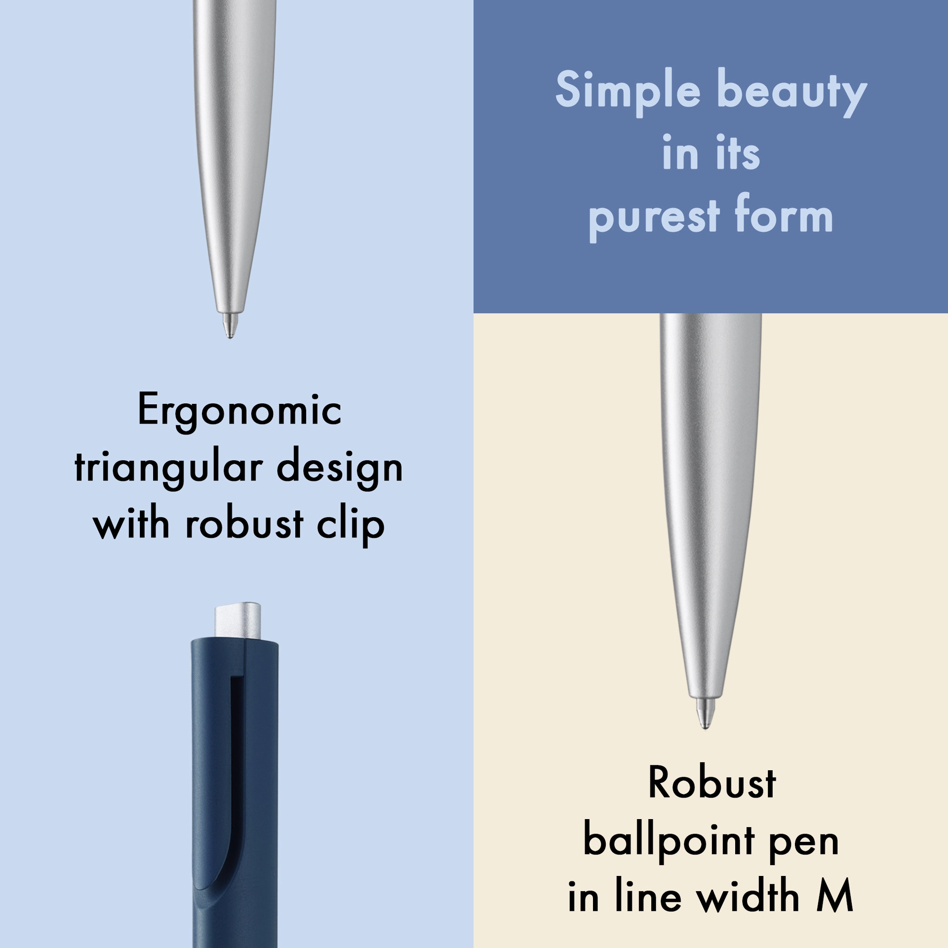 Kaum ein Schreibgerät ist so radikal auf seine Funktion reduziert wie der LAMY noto. Wer Design liebt, wird auf diesen Kugelschreiber nicht verzichten wollen: Das monolithische Design in Dreiecksform mündet in einen Clip, der formal aus der Gehäusekontur entsteht – schlichte Schönheit in ihrer Reinform.