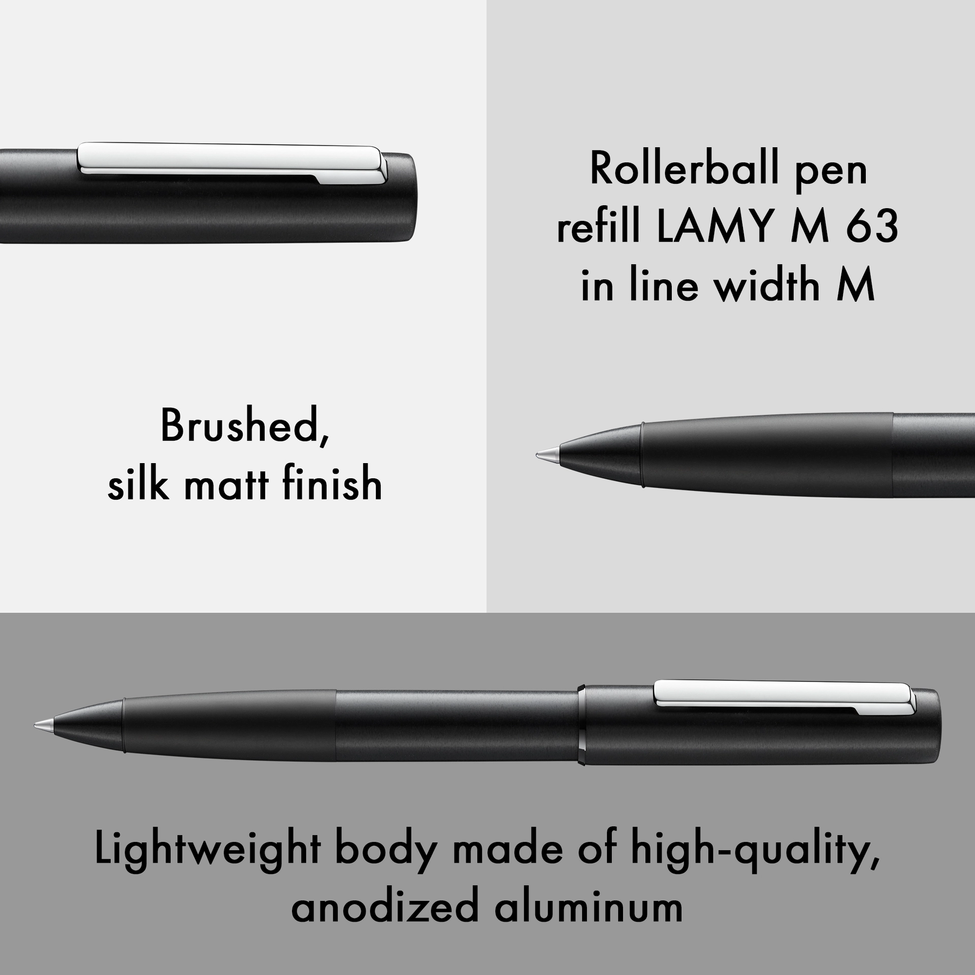 Das Design LAMY aion besticht durch seine einzigartige Harmonie. Ein voluminöser und gleichzeitig leichter Körper aus eloxiertem Aluminium geht nahtlos in das Griffstück über. So entsteht eine Haptik, die ebenso angenehm ist wie seine Optik. Mit seiner gebürsteten Oberfläche und eigens für ihn konzipierten Stahlfeder greift er den Kern der LAMY Designphilosophie auf ganz neue Art und Weise auf.