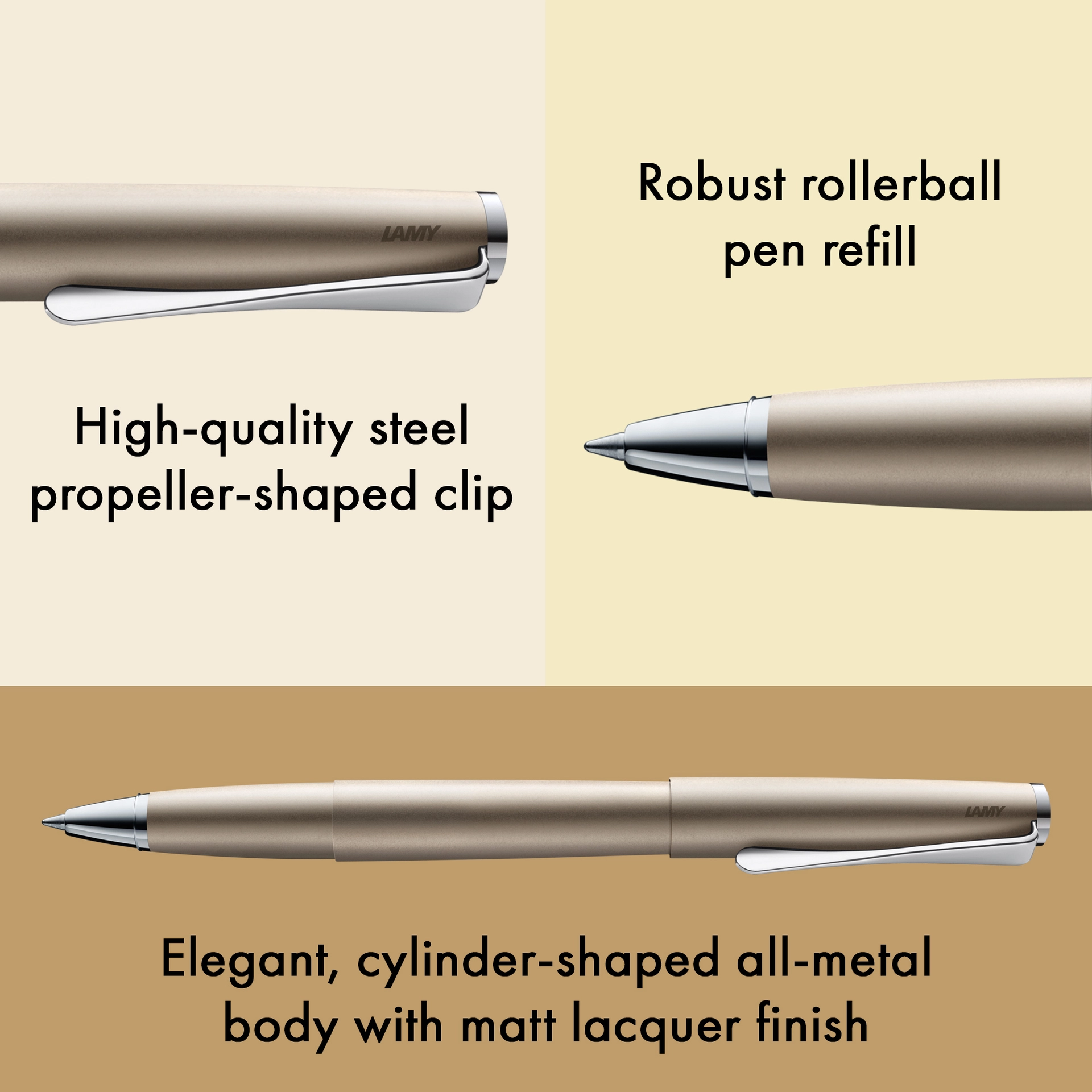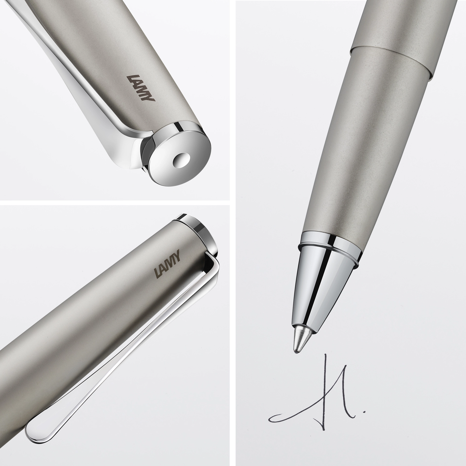 Der LAMY studio überzeugt mit zeitloser Eleganz und universellem Design. Die bauchige Zylinderform seines Körpers aus Ganzmetall ergibt sich nahtlos aus den einzelnen Gehäuseteilen und ist dabei bewusst minimalistisch gehalten. Die sanfte Wölbung und die harmonischen Proportionen machen den Clip zum Markenzeichen des LAMY studio: Er setzt der sachlichen Grundform einen innovativen gestalterischen Akzent entgegen und erzeugt ein einzigartiges Gesamtbild.