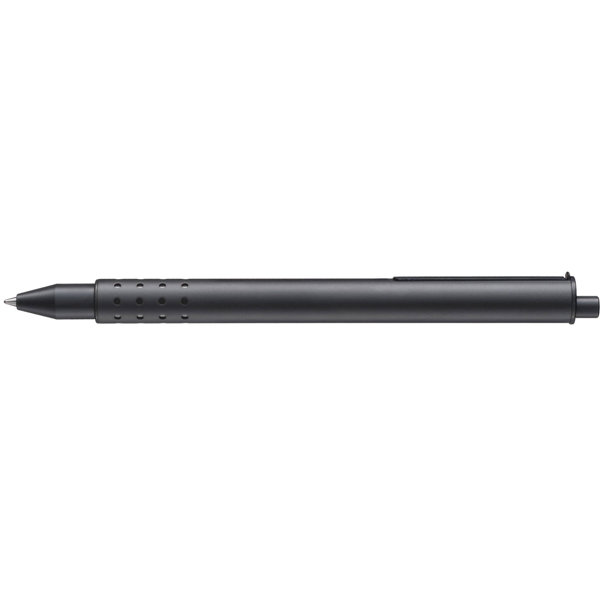 Der LAMY swift mit raffiniertem Drückermechanismus: Beim Druck auf den Drücker fährt die Schreibspitze aus. Gleichzeitig wird der Clip im Gehäuse versenkt. Ein erneuter Druck fährt die Mine wieder ein. Der Clip erscheint und der LAMY swift ist transportbereit. Die Mine ist luftdicht verpackt und liegt dem Stift bei.